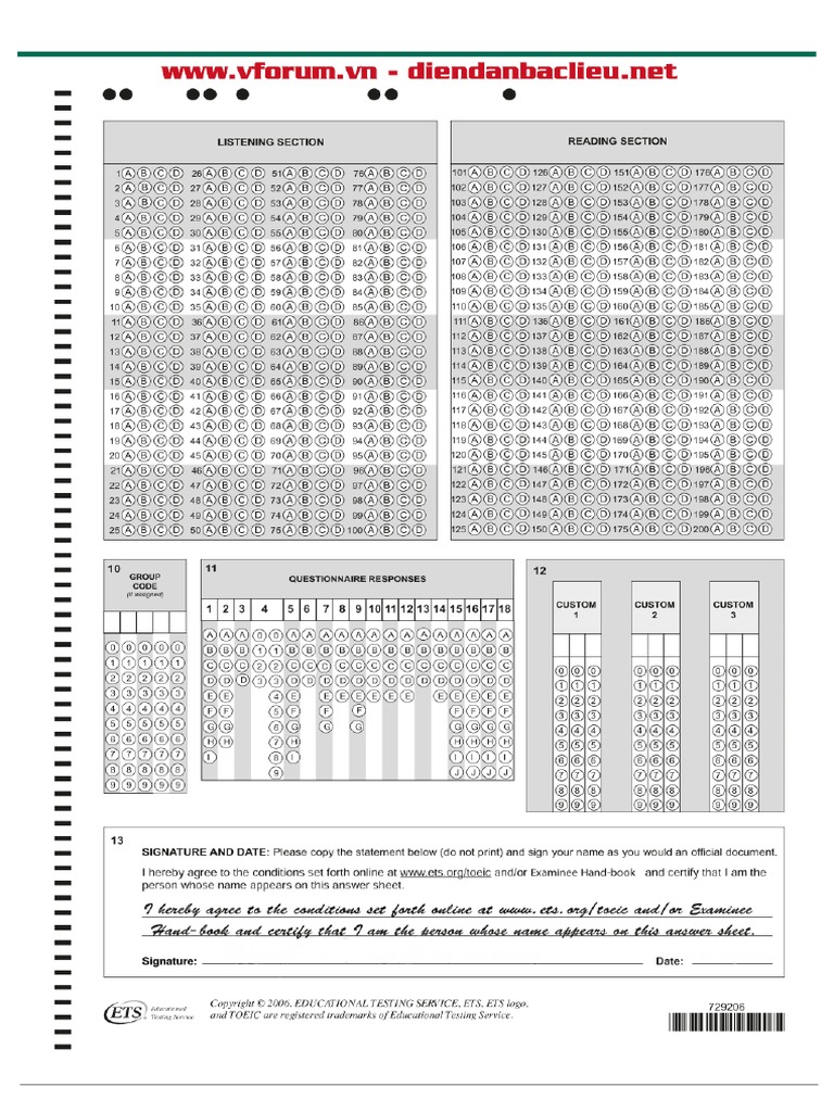 Thang điểm và cách tính điểm bài thi toeic 2021.